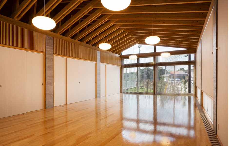 位于福冈县城小郡市,日式别墅住宅区的会所设计。结合用地特性,室外空间配备住宅区种植园及室外BBQ,集合广场等景观空间,室内配备图书,餐饮、娱乐及公共厨房。为住宅区居民提供生活文化交流场所。